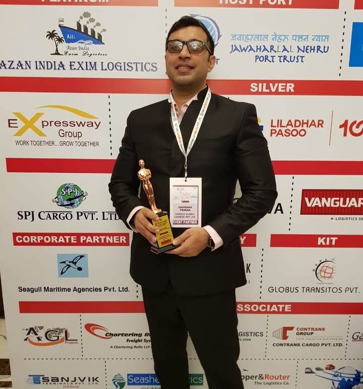 SAURABH TRIKHA awarded as 'YOUNG LOGISTICS PROFESSIONAL OF THE YEAR' by Exim India for MULTIMODAL Logistics Award at Hotel Shangrila on 17th Jan.